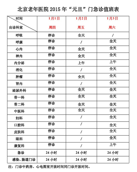 注:1月4日(周日)正常上班,出周五门诊。