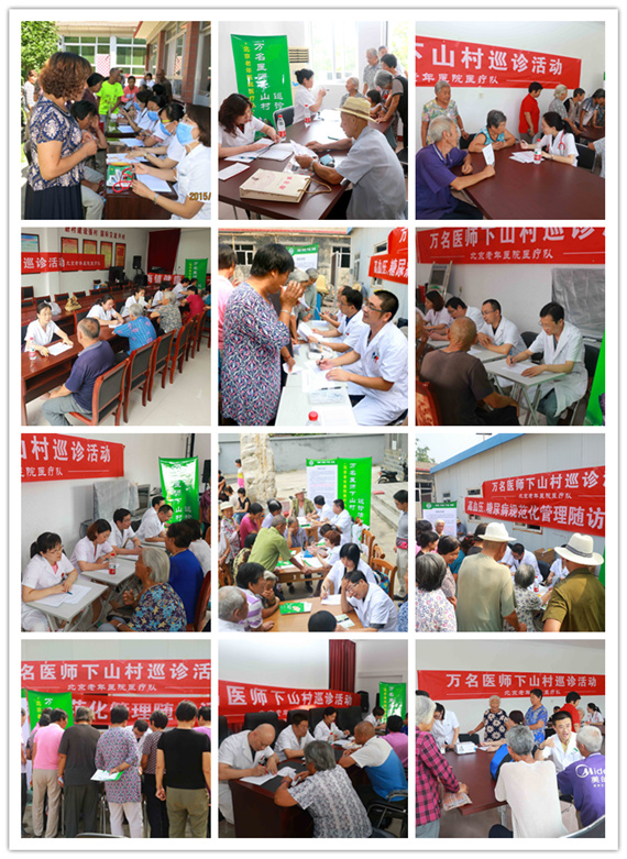 8月4日到8月20日作为医院“万名医师下乡村”活动的第一阶段,期间医院共派出14个巡诊小组,84位具有高级职称的医师、护师、药师、技师组成的专家团队,为怀柔区渤海镇、九渡河镇的26个行政村的村民开展了义诊活动。