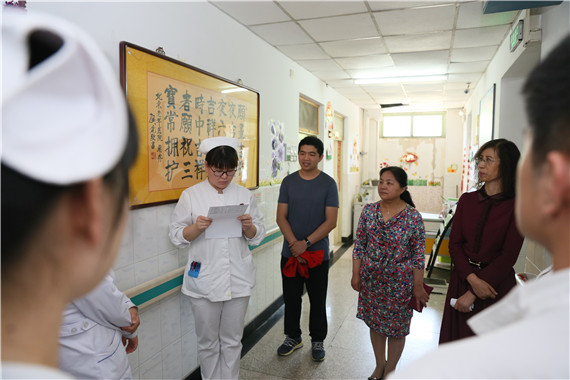 随后,党委书记田喜慧与副书记张翠香共同揭牌,田书记并作了总结讲话,她充分肯定了这支团队为创建青年文明号所作出的努力,并提出临终关怀科是一个特殊的病房,患者的病痛不只是身体上的,还包括来自心理的问题。作为关怀病房的护理团队,而且三分之二都是九零后,这就更需要大家认真学习,提高业务水平,付出更多的爱心和细心去护理老人,用足够的耐心去倾听并疏通患者及家属的心理。要牢牢把握青年文明号的宗旨,用实际行动弘扬我们医院的孝道文化,向着国家级青年文明号的目标努力!