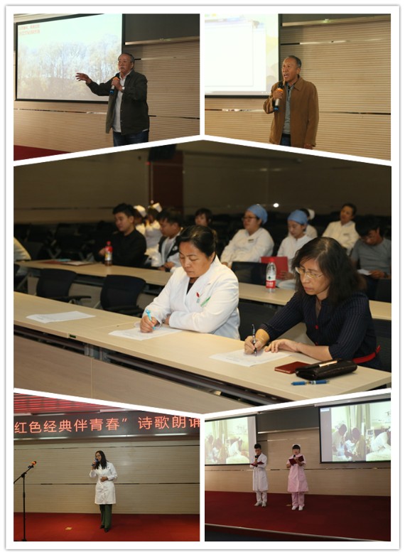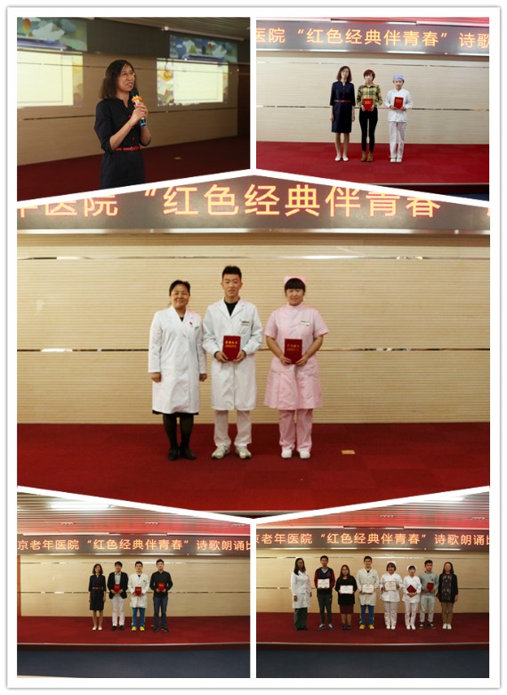 正值中国共产党建党95周年,伟大祖国67华诞之际,结合医管局关于“全民乐阅读”文件指示,陶冶医院团员青年艺术情操,提升诗歌朗诵水平,展示青春活力,营造朝气蓬勃、积极向上的医院文化氛围。9月28日,北京老年医院团委开展以“红色经典伴青春”为主题的诗歌朗诵比赛, 团员干部、团员以及离退休老干部共计40余人参加了此次活动。党委书记田喜慧、党委副书记、纪委书记张翠香,党办副主任张良,宣传中心副主任杨颖娜以及团委委员担任此次比赛评委,比赛由团委书记赵浩凯主持。