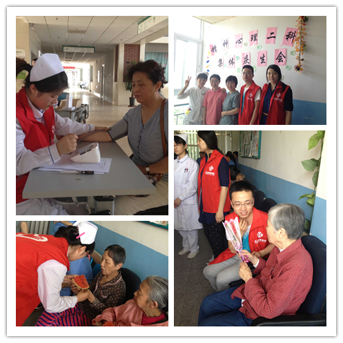 针对老年医院患者普遍年龄偏高、行动不便等特点,志愿者们在门诊大厅,为来往的患者做引导,并辅助患者挂号、就诊、交费、取药、打印化验单、免费测量血压等;为了给5月份过生日的痴呆老人们庆生,志愿者们精心准备了一场集体生日会,陪老人们聊天,为他们唱歌,还准备了鲜花及老人们爱吃的食品。志愿服务结束后,老人还恋恋不舍的拉着志愿者的手,希望他们能常来陪伴他们。