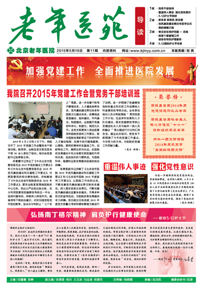 时代在前进,医院在发展。新的一年里,随着新病房楼的启用、新设备的引进和新技术的开展,护理工作面临新的挑战。希望全院护理人员继续传承和发扬南丁格尔精神,以昂扬向上的工作态度,脚踏实地,勤奋工作,找准差距,正视问题,充分发挥个案管理师在多学科团队中的作用,不断深化优质护理服务理念,逐步提高我院老年优质护理服务的品牌效应,以实际行动践行 “护行健康,服务百姓”的宗旨,推动护理学科发展。