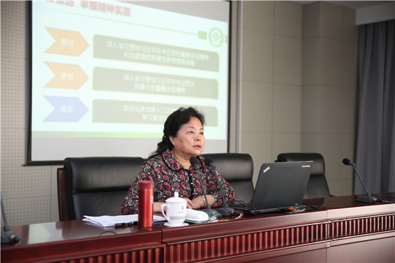 田喜慧书记以《学习领会精神,明确努力方向,提高自身素质,促进全面提升》为题为全体干部进行专题授课,全面解读了“两贯彻一落实”的重要内容和总体要求,带领大家领会精神,并引导大家对照《建立现代医院管理制度的指导意见》、结合医院发展现状实际深入思考,要求全体干部要主动转变思想,努力适应新的形势和要求,强化系统化、精细化、标准化、信息化和协同化思维,通过先进的医院文化,实现思想同心、目标同向、行动同步、执行同力,为医院发展贡献力量。