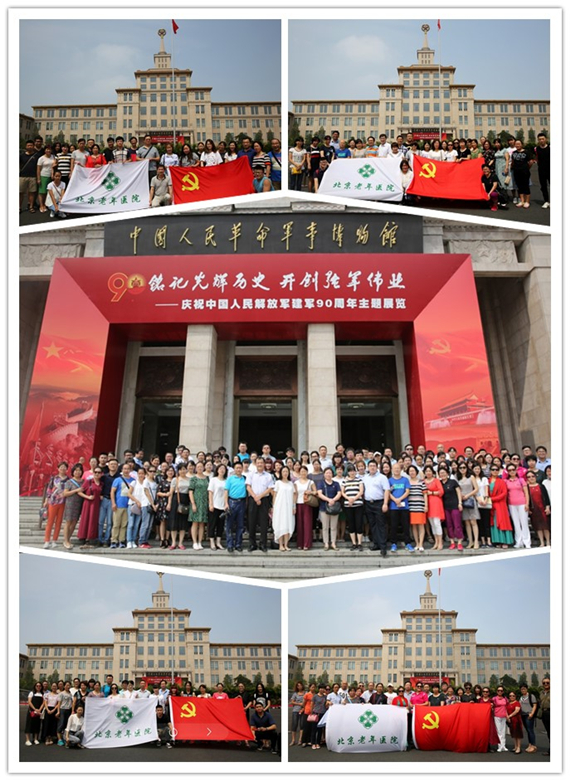 8月21日下午,北京老年医院党团员、干部职工共计130人参观了在中国人民革命军事博物馆举办的“铭记光辉历史开创强军伟业——庆祝中国人民解放军建军90周年主题展览”,集体领略中国人民解放军90年波澜壮阔的画卷。