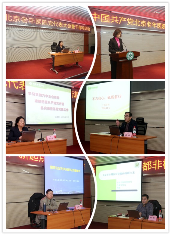 11月17、18日,北京老年医院党委举办了“中国共产党北京老年医院党员代表大会暨干部培训会”,全院党代表、院领导、中层干部、护士长、部分统战人士和职工代表共计200余人参加了培训。培训会由党委副书记张翠香同志主持。