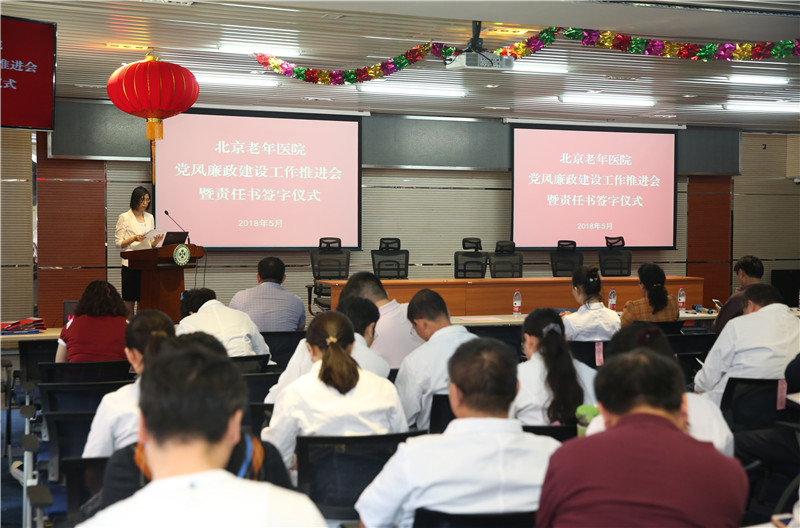 为深入贯彻落实医管局党委和院党委关于全面推进医院党风廉政建设和反腐败工作的总体要求,按照党要管党、从严治党的工作思路,不断推进党风廉政建设主体责任和监督责任落实,进一步实施清单化明责、痕迹化履责、台账化记责的主体责任全程记实工作。5月7日下午,在医院报告厅隆重举行了北京老年医院党风廉政建设工作推进会暨落实党风廉政建设主体责任清单责任书签字仪式。院领导、中层干部、护士长等100余人参加会议,会议由党委副书记、纪委书记张翠香主持。