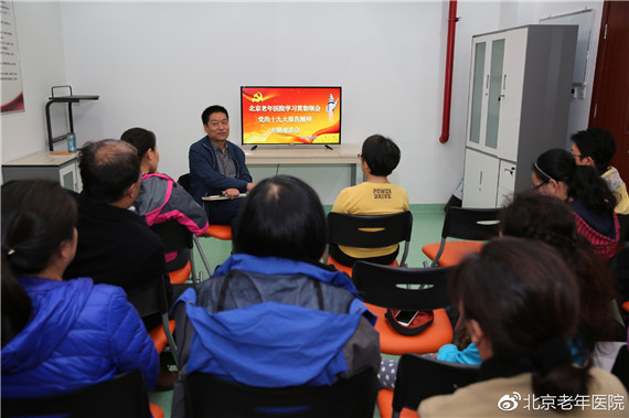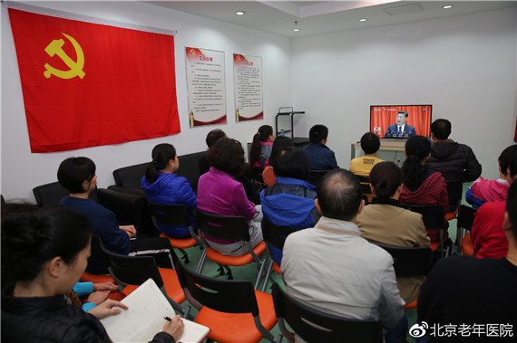 最后,党委书记田喜慧同志强调,要认真组织各级各层次党员干部职工学习党的十九大报告,领会新思想、新观点、新论断,特别是要自觉把思想、认识和行动统一到十九大精神上来。以十九大精神为指导,立足岗位,鼓足干劲,开拓创新,忘我工作,落实现代医院管理制度,落实实施健康中国战略布局,积极应对人口老龄化,推动老年医学进步,为医院科学发展和健康中国、健康北京建设贡献力量。