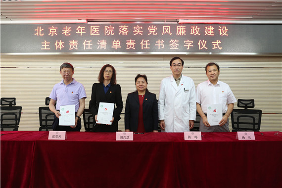 为深入贯彻落实医管局《关于推进领导干部落实党风廉政建设主体责任全程记实工作的实施意见》通知精神,全面推进医院党风廉政建设和反腐败工作深入开展,院党委按照党要管党、从严治党的要求,全面加强党风廉政建设主体责任建设,积极推动医院落实清单化明责、痕迹化履责、台账化记责的主体责任全程记实的工作要求。5月8日下午,在医院报告厅隆重举行了北京老年医院落实党风廉政建设主体责任清单责任书签字仪式。院领导、中层干部、护士长等100余人参加会议,会议由党委副书记、纪委书记张翠香主持。