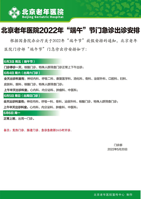 下一篇: 北京老年医院2022年劳动节假期门急诊出诊安排