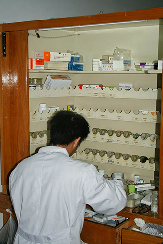 工作人员手工摆药