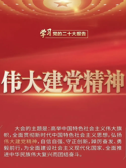 深刻领会党的二十大的精神。高举中国特色社会主义伟大旗帜,全面贯彻习近平新时代中国特色社会主义思想,弘扬伟大建党精神,自信自强、守正创新,踔厉奋发、勇毅前行,为全面建设社会主义现代化国家、全面推进中华民族伟大复兴而团结奋斗。