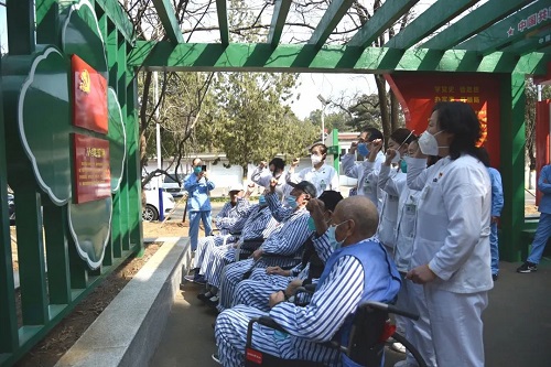 3月29日下午,内一党支部在医院党建长廊开展主题为“传承红色基因”的主题党日活动,让党员接受红色洗礼,不忘初心,牢记使命。内一党支部党员、入党积极分子和入住精神心理科病房患有失智症的老党员同志们一起参加了活动。