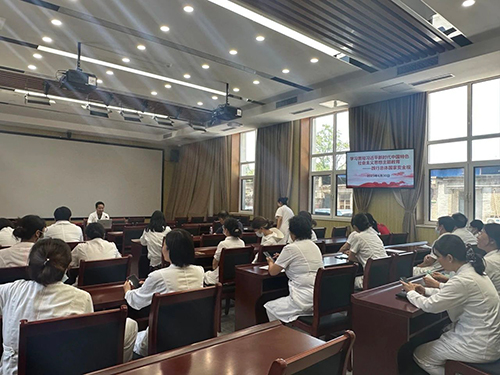 为深入学习贯彻习近平新时代中国特色社会主义思想,深刻汲取4.18长峰医院火灾教训,扎实推进医院安全工作向基层延伸,6月30日,党委书记陈兴德同志深入联系党支部以 《习近平新时代中国特色社会主义思想之总体国家安全观》为题讲专题党课。内一党支部、联合三党支部和联合五党支部党员、发展对象、入党积极分子参加学习。联合五党支部书记、党委办公室主任刘宇同志主持。