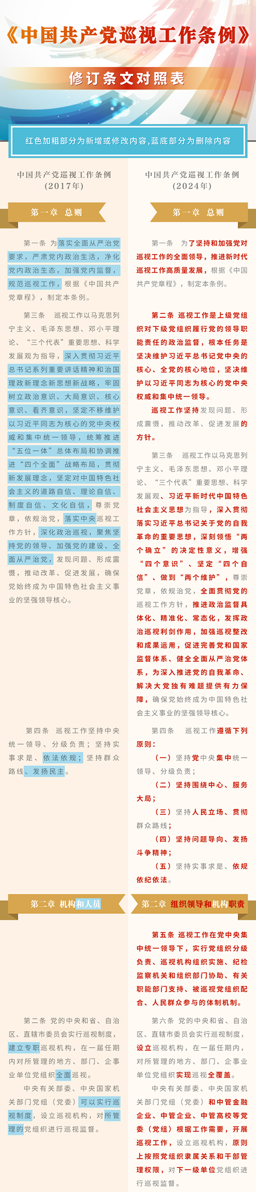 《中国共产党巡视工作条例》修订条文对照表