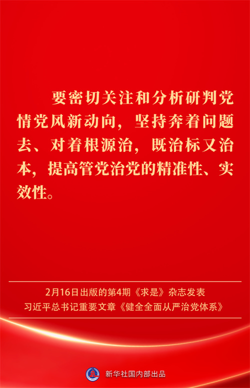 2月16日出版的第4期《求是》杂志发表习近平总书记重要文章《健全全面从严治党体系》。如何进一步健全要素齐全、功能完备、科学规范、运行高效的全面从严治党体系?习近平总书记阐明要旨——