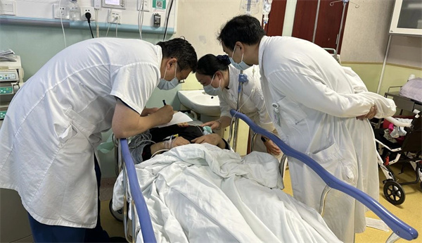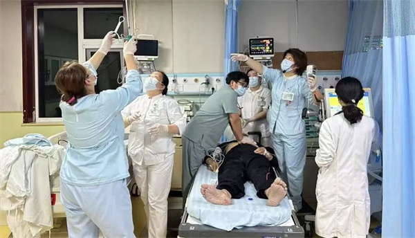 医院同步开通无名患者绿色通道,骨科臧传义主任、神经外科赵义医生、胸外科陈震医生、麻醉科武栋医生快速响应进行多学科会诊。在监护仪急促的报警声中,呼吸机规律的“滴答”声、除颤仪待命的嗡鸣声,交织成紧张的急救背景音。