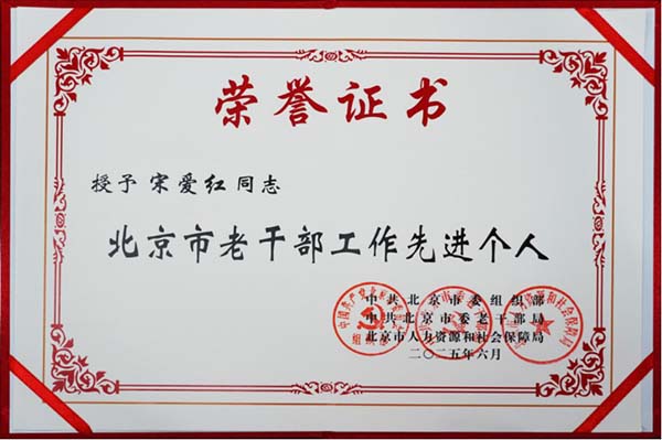 近日,市委组织部、市委老干部局、市人力资源和社会保障局共同举办的“北京市离退休干部和老干部工作‘双先’评选”活动中,北京老年医院离退休办公室宋爱红同志荣获“北京市老干部工作先进个人”称号。