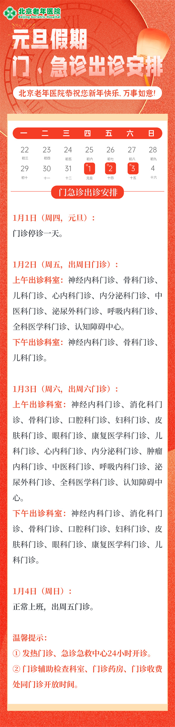 上一篇: 北京老年医院2026年元旦假期门、急诊出诊安排