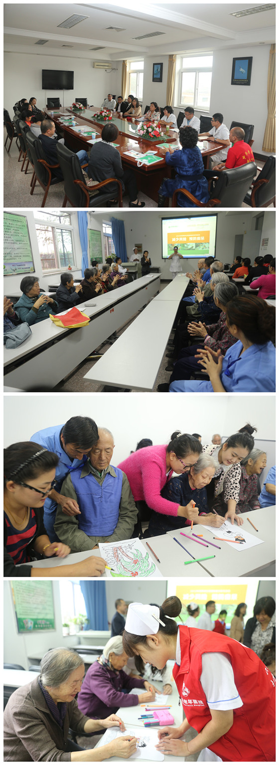 “首期老年益智公益课堂”内容丰富、形式多样,有党委副书记张翠香的致辞;有精神心理一科主任张守字关于如何预防老年痴呆的知识普及;有音乐治疗环节,志愿者和老人们的同台歌唱;有猜谜环节,老人们踊跃竞猜;有益智游戏环节:即手工折纸、图片填色、玩具拼图等;同时还有院领导与各养老机构的负责人座谈,相互交流成功经验,以便更好的服务老人。大家还把精心准备的礼物送到每一位老人手中,看到他们幸福的笑脸也给我们带来巨大的幸福。