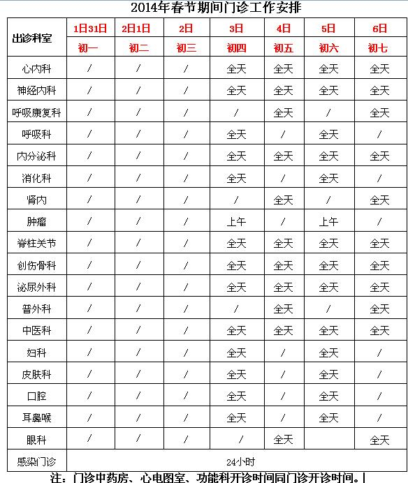 三、2月4日(初五)全天开诊的科室有 :神经内科、心内科、呼吸康复科、内分泌科、肾内科、中医科、眼科、普外科、泌尿外科、骨科1、骨科2。
